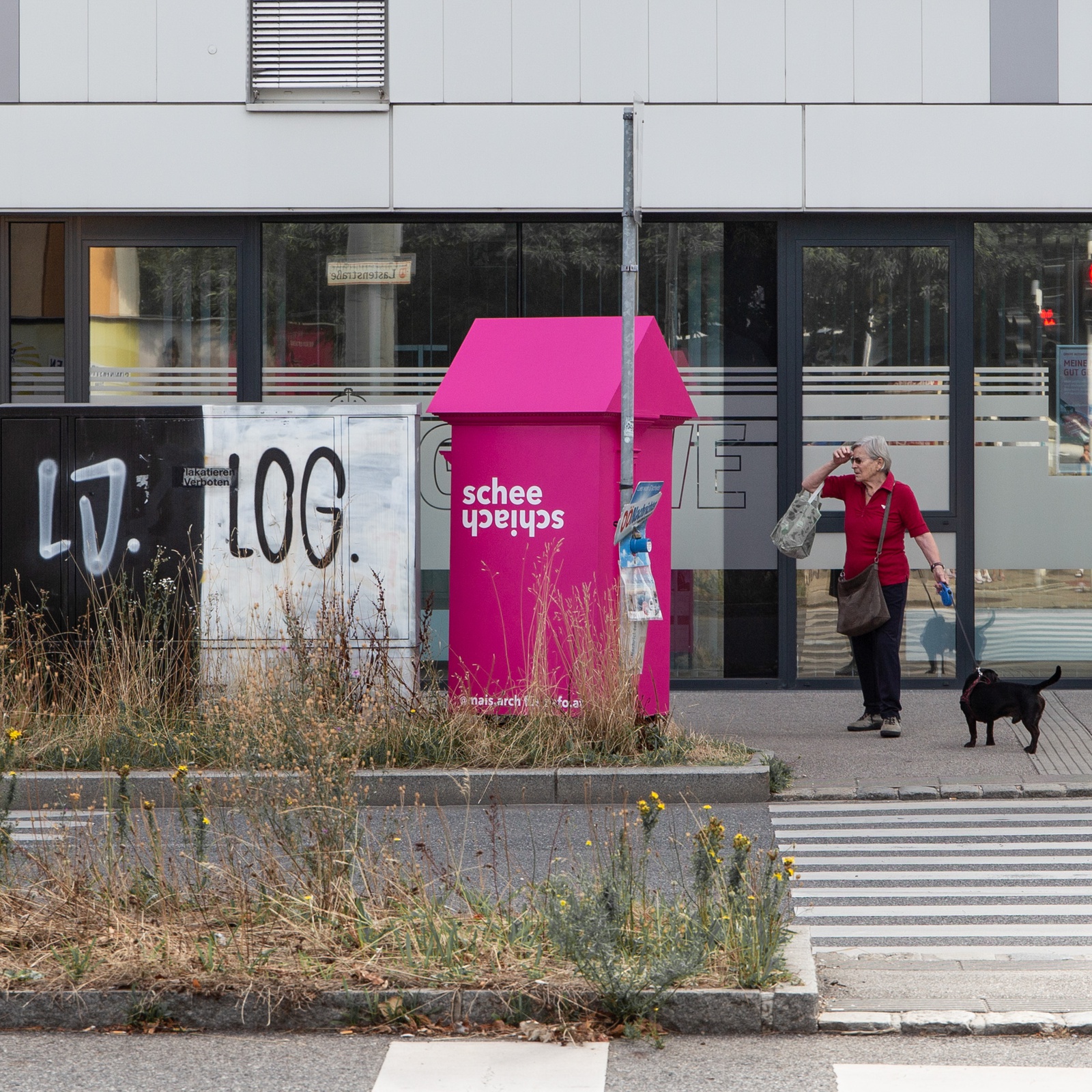 Seit Beginn der zweiten Episode der Ausstellung schee schiach im afo architekturforum oberösterreich ist das afo-Mobil in Linz unterwegs. Als mobiles Umfragetool stellt es alternative Fassaden zur Auswahl über die interessierte Passant*innen einfach abstimmen können. Diese Bebauungsvorschläge stammen nicht von namhaften Architekt*innen sondern werden von einer künstlichen Intelligenz (KI) errechnet. Architekturpreis oder Abrissbirne?