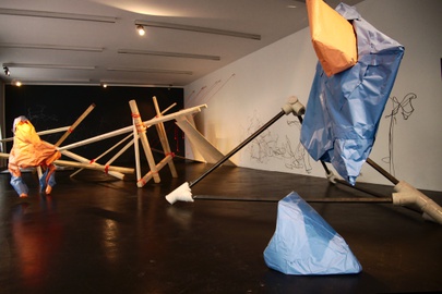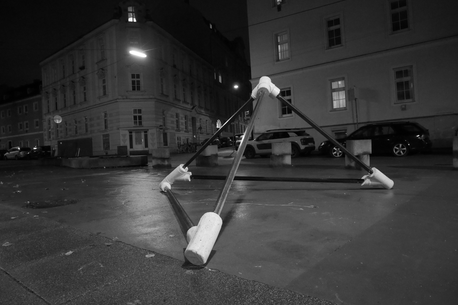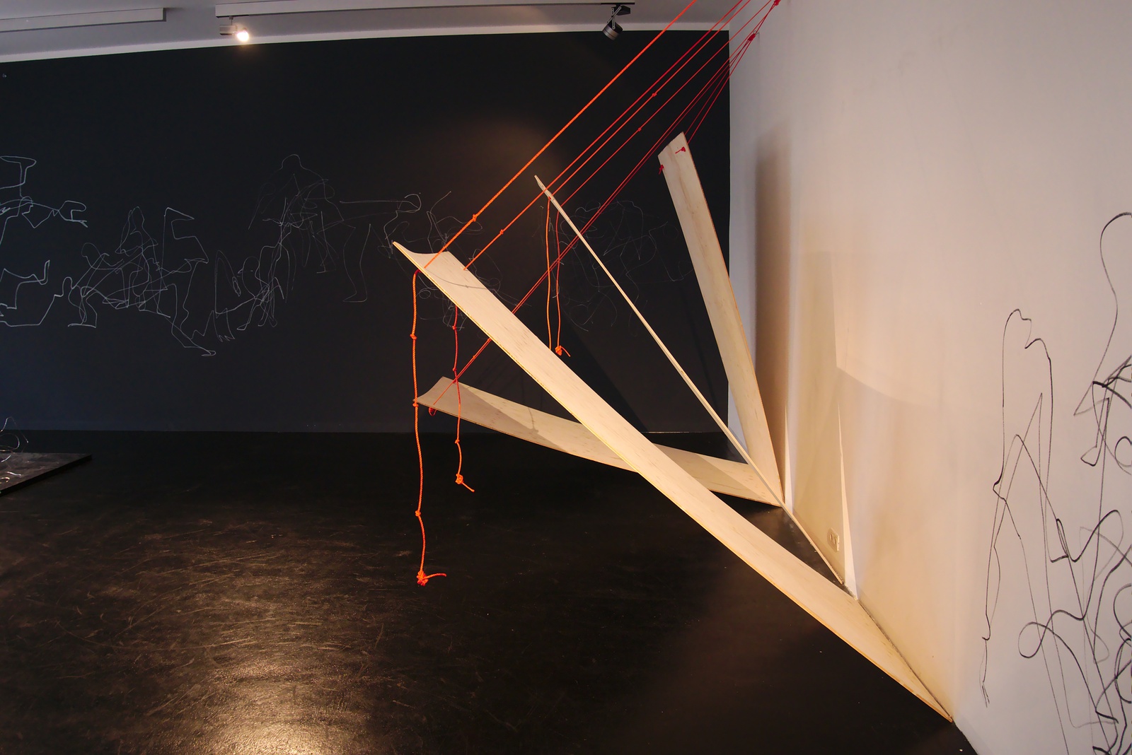In der Ausstellung zeigen wir Momentaufnahmen eines fortlaufenden Prozesses experimenteller Raumproduktion. Unterschiedliche Versuchsanordnungen werden dokumentiert, Strukturen aufgebrochen und Bewegungen eingefroren. Die beiden vorangestellten Performances verschaffen den Besuchern Einblicke in die Entstehung der Exponate. Ebenso wie Bewegung selbst hört Raumproduktion durch Bewegung nie auf. Diese Geschichte hat kein Ende, sie wird mit und durch das Publikum fortgeschrieben.